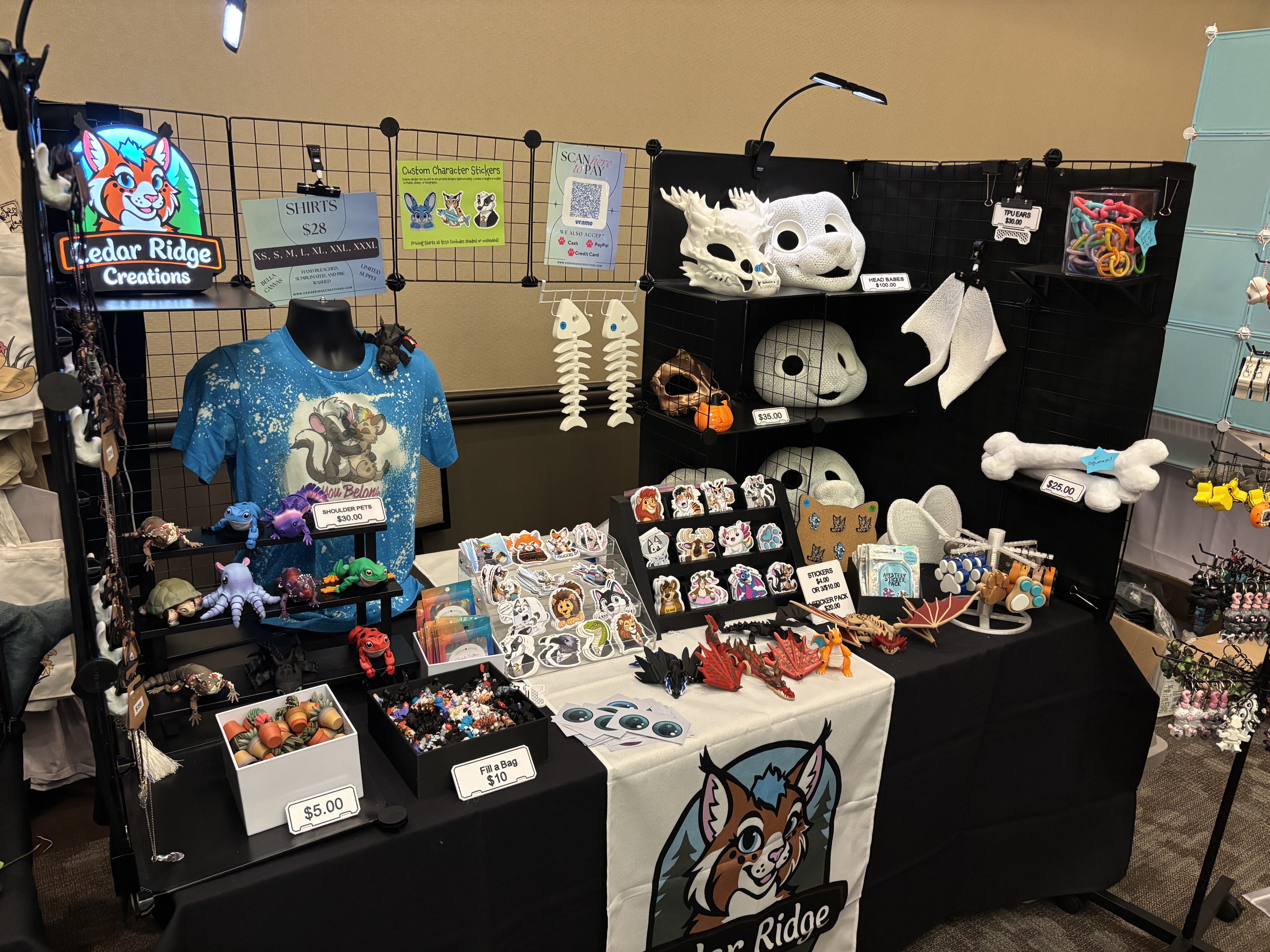 Cedar Ridge Creations offers handmade wire wrapped jewelry, fursuit pre-mades, fursuit props, 3D printed toys and figurines, as well as stickers and enamel pins. We also offer custom fursuit commissions as you can find throughout the rest of the website.
